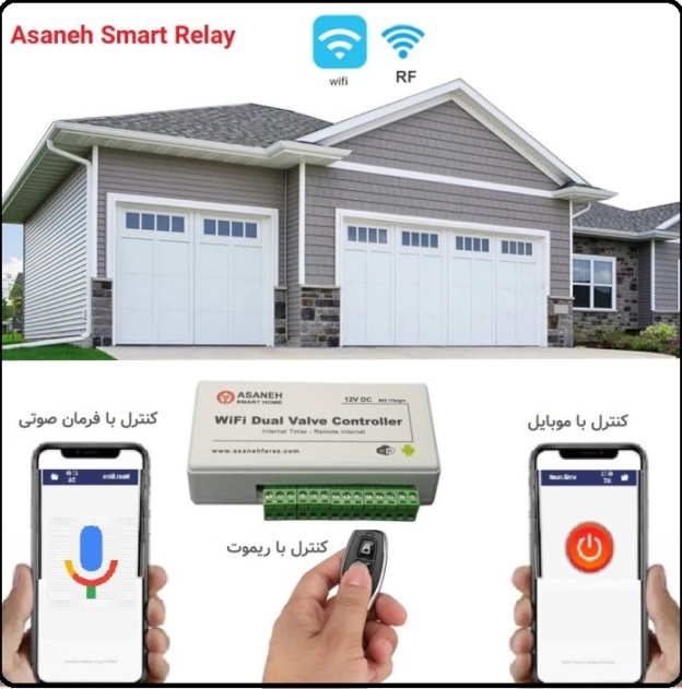درب پارکینگ هوشمند و کرکره برقی هوشمند : با استفاده از رله های هوشمند میتوان جک های درب پارکینگ و یا م.تور های کرکره برقی را هوشمند سازی کرد و با استفاده از گوشی هوشمند درب پارکینگ و کرکره برقی را کنترل نمود.