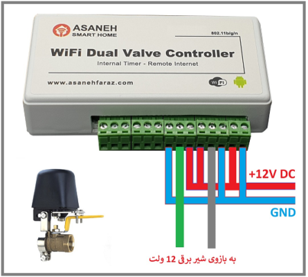 در تصویر زیر نحوه اتصال کنترلر به برق و شیر برقی را ملاحظه می فرمایید .